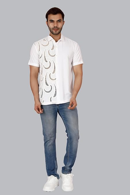 VAibr(ə)nt Men's White Crochet lace Embroidered Shirt