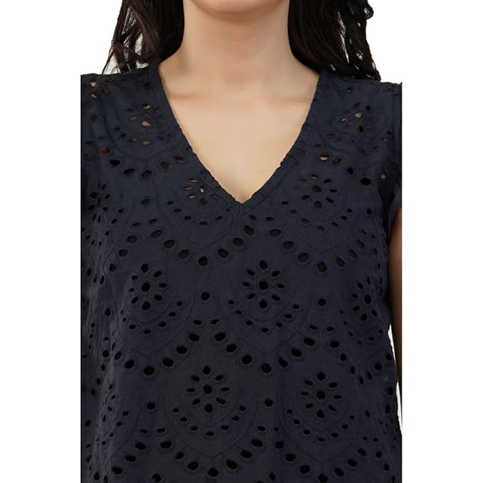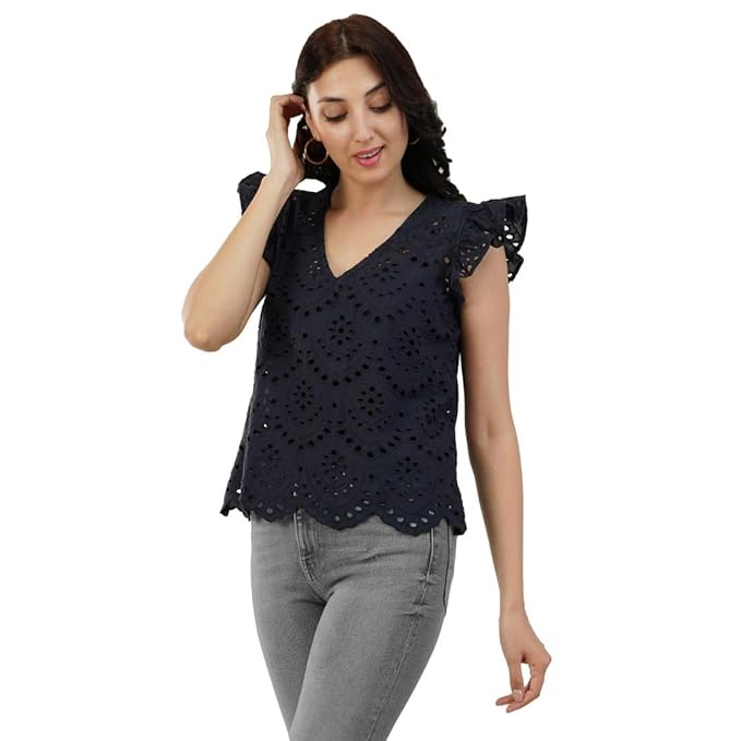 VAibr(ə)nt Women's Self Design Flutter Sleeve Schiffli Top