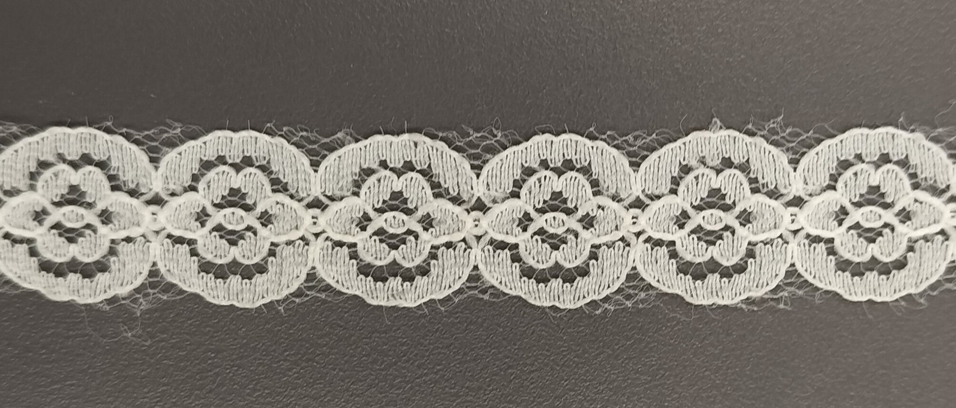 Enhance your projects with this white nylon daisy chain lace trim, designed with repeating floral motifs for a timeless and charming look. Measuring about 2 cm wide, this lace is perfect for sewing, dressmaking, bridal embellishments, lingerie, DIY crafts, and home dΓ©cor projects. Made from durable nylon, it is soft, lightweight, and easy to sew, making it an excellent choice for creative designers and craft lovers.